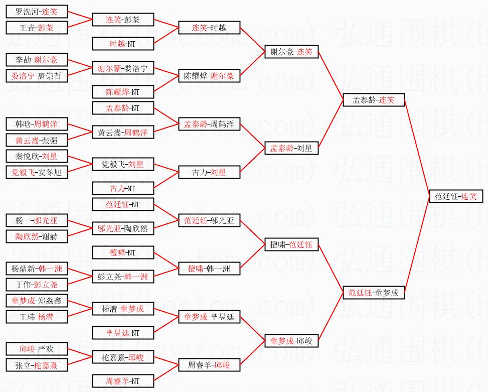 1.连笑获得冠军,范廷钰获得亚军。决赛比分:连笑1:0范廷钰。棋局: