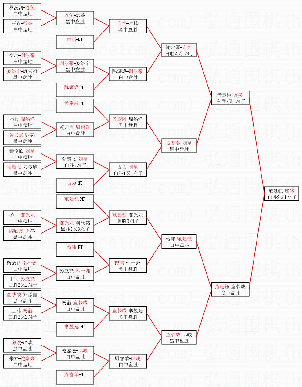 1.连笑获得冠军,范廷钰获得亚军。决赛比分:连笑1:0范廷钰。棋局: