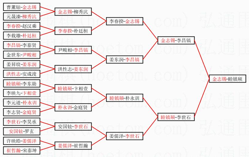 | 1.金志锡获得冠军,睦镇硕获得亚军。决赛比分:金志锡3:0睦镇硕。棋局: | ||