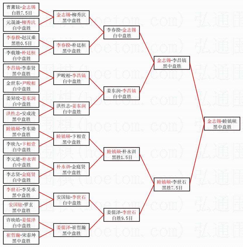 | 1.金志锡获得冠军,睦镇硕获得亚军。决赛比分:金志锡3:0睦镇硕。棋局: | ||