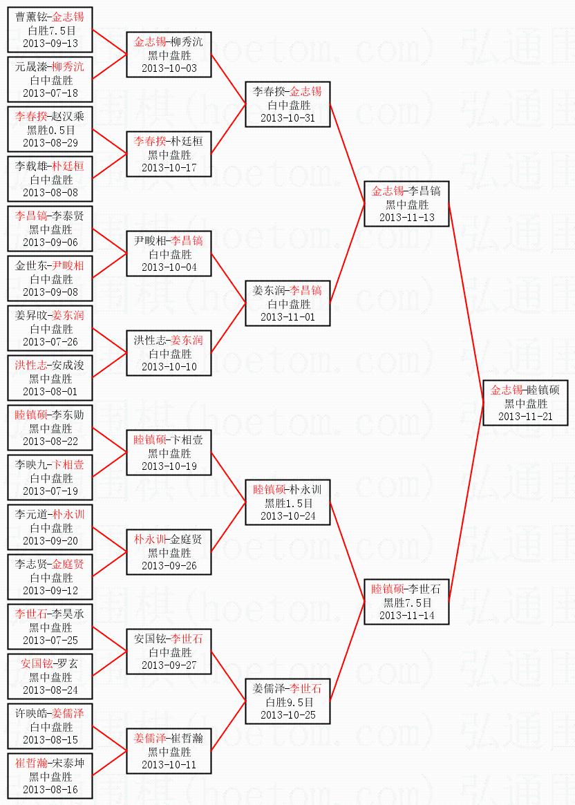 | 2013-11-18 金志锡-睦镇硕 黑中盘胜 | ||