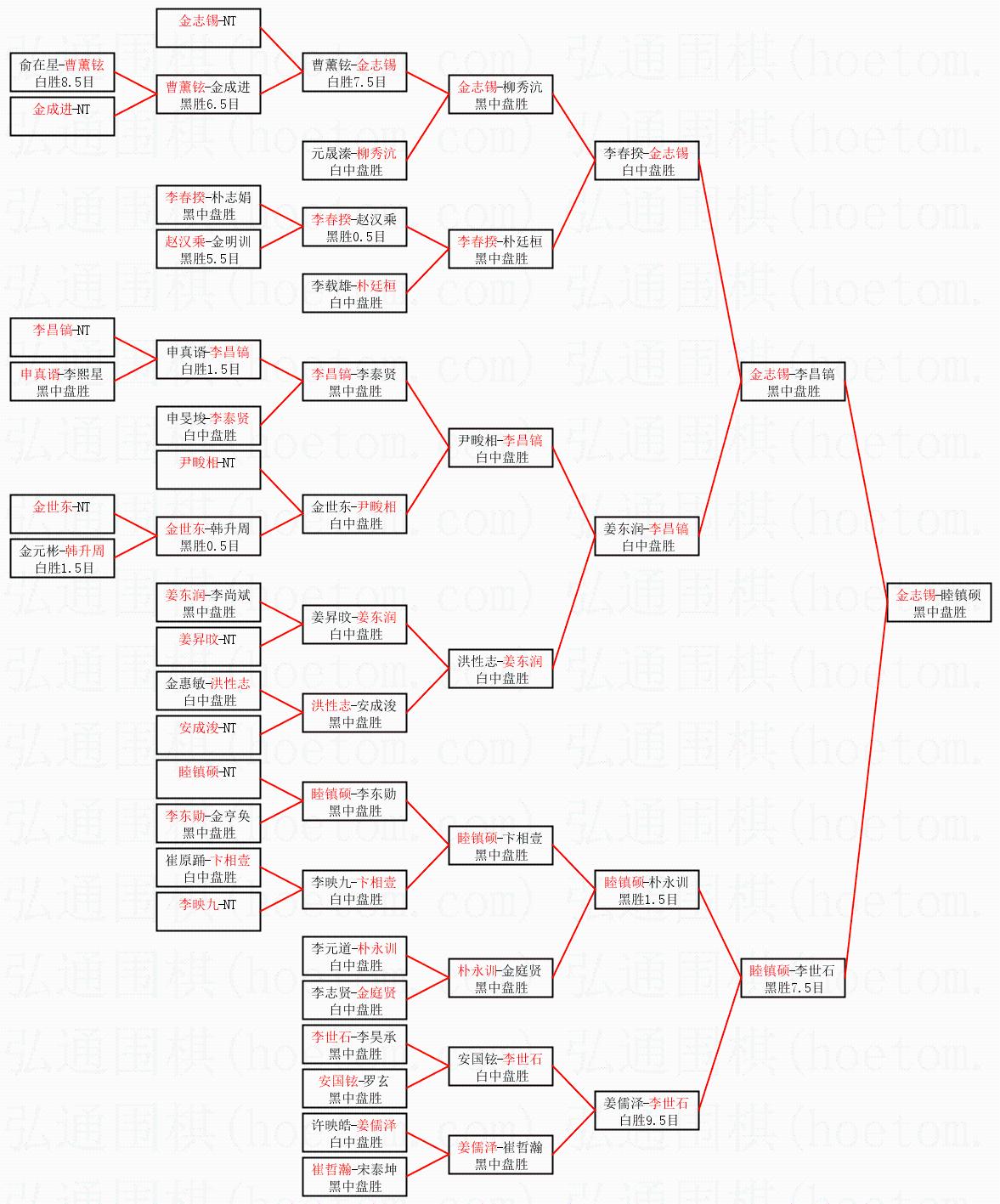 | 1.金志锡获得冠军,睦镇硕获得亚军。决赛比分:金志锡3:0睦镇硕。棋局: | ||