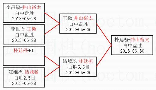 1.井山裕太获得冠军,朴廷桓获得亚军。决赛比分:井山裕太1:0朴廷桓。棋局: