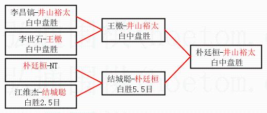 1.井山裕太获得冠军,朴廷桓获得亚军。决赛比分:井山裕太1:0朴廷桓。棋局: