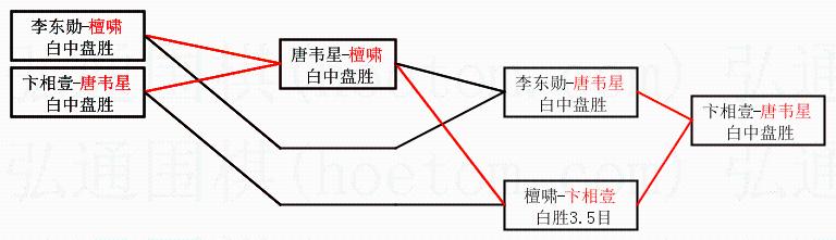 1.唐韦星获得冠军,卞相壹获得亚军。决赛比分:唐韦星1:0卞相壹。棋局: