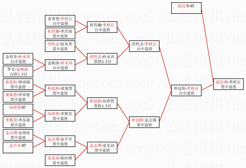 | 1.赵汉乘获得冠军,李世石获得亚军。决赛比分:赵汉乘3:1李世石。棋局: | ||