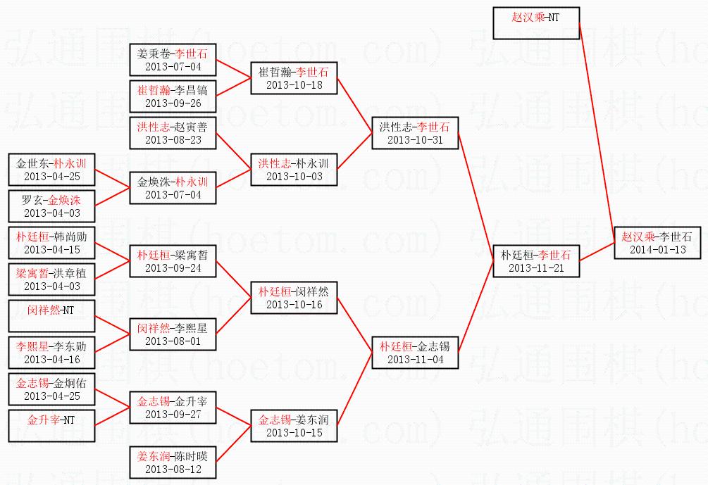 1.赵汉乘获得冠军,李世石获得亚军。决赛比分:赵汉乘3:1李世石。棋局: