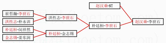 1.赵汉乘获得冠军,李世石获得亚军。决赛比分:赵汉乘3:1李世石。棋局: