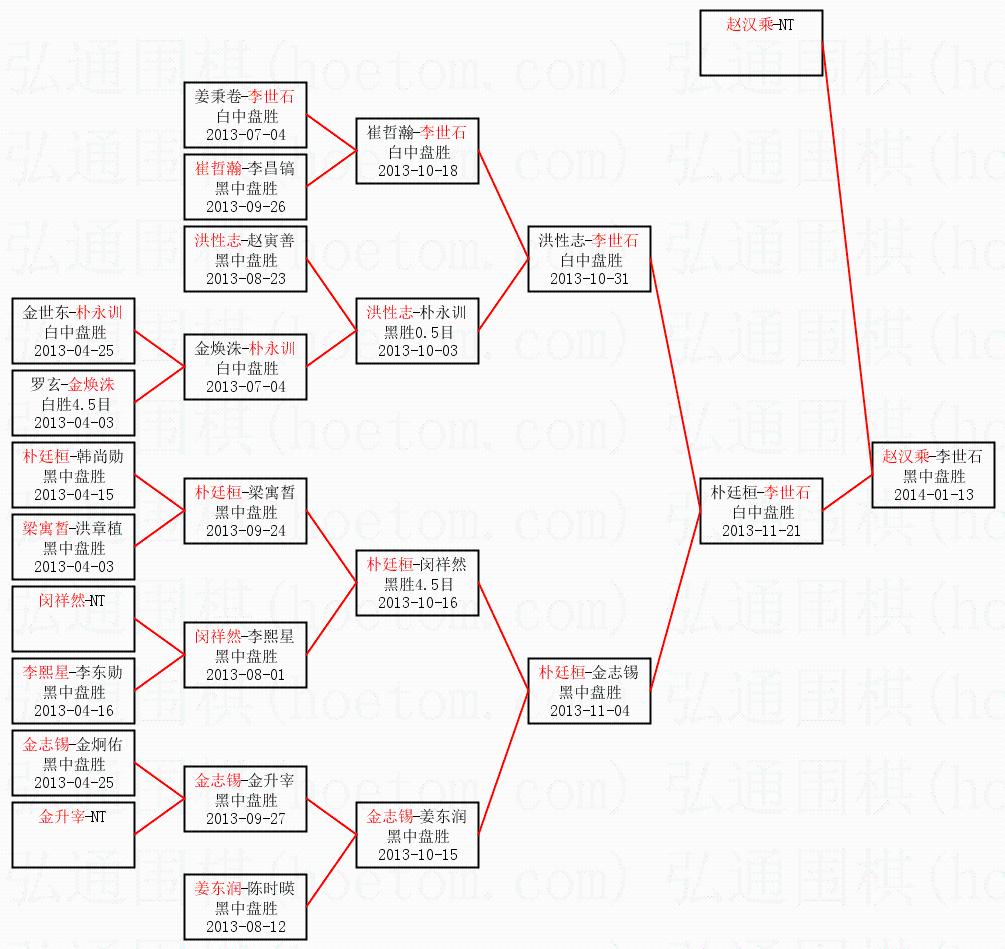 1.赵汉乘获得冠军,李世石获得亚军。决赛比分:赵汉乘3:1李世石。棋局: