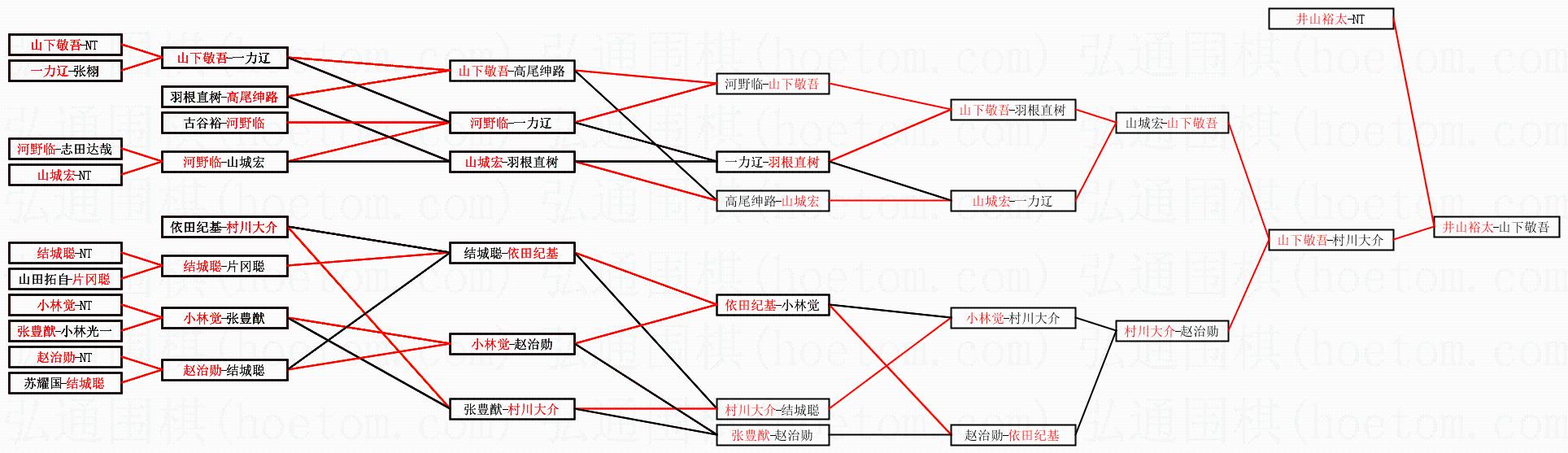 1.井山裕太获得冠军,山下敬吾获得亚军。决赛比分:井山裕太4:3山下敬吾。棋局: