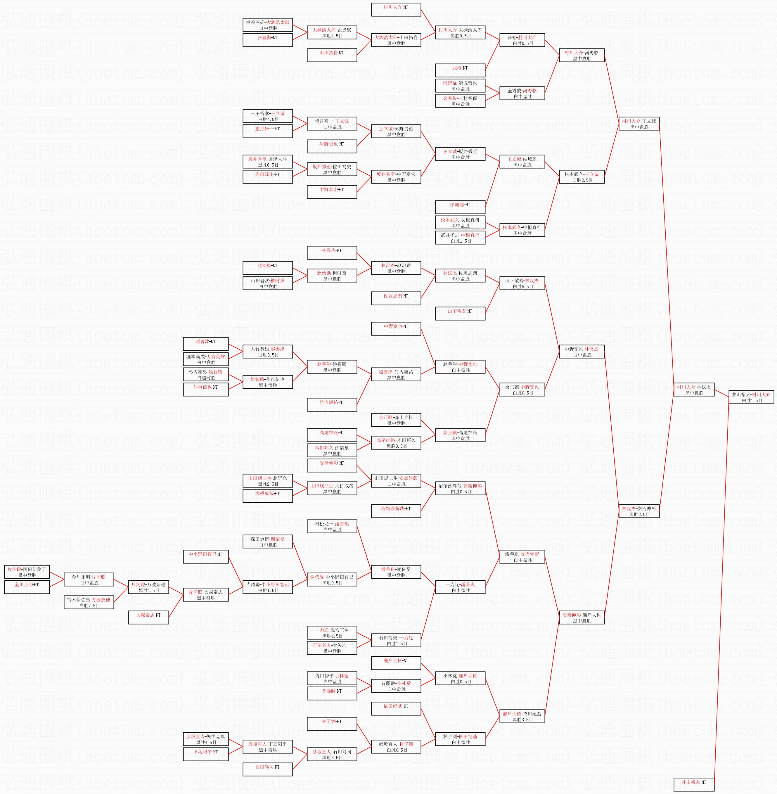 1.村川大介获得冠军,井山裕太获得亚军。决赛比分:村川大介3:2井山裕太。棋局: