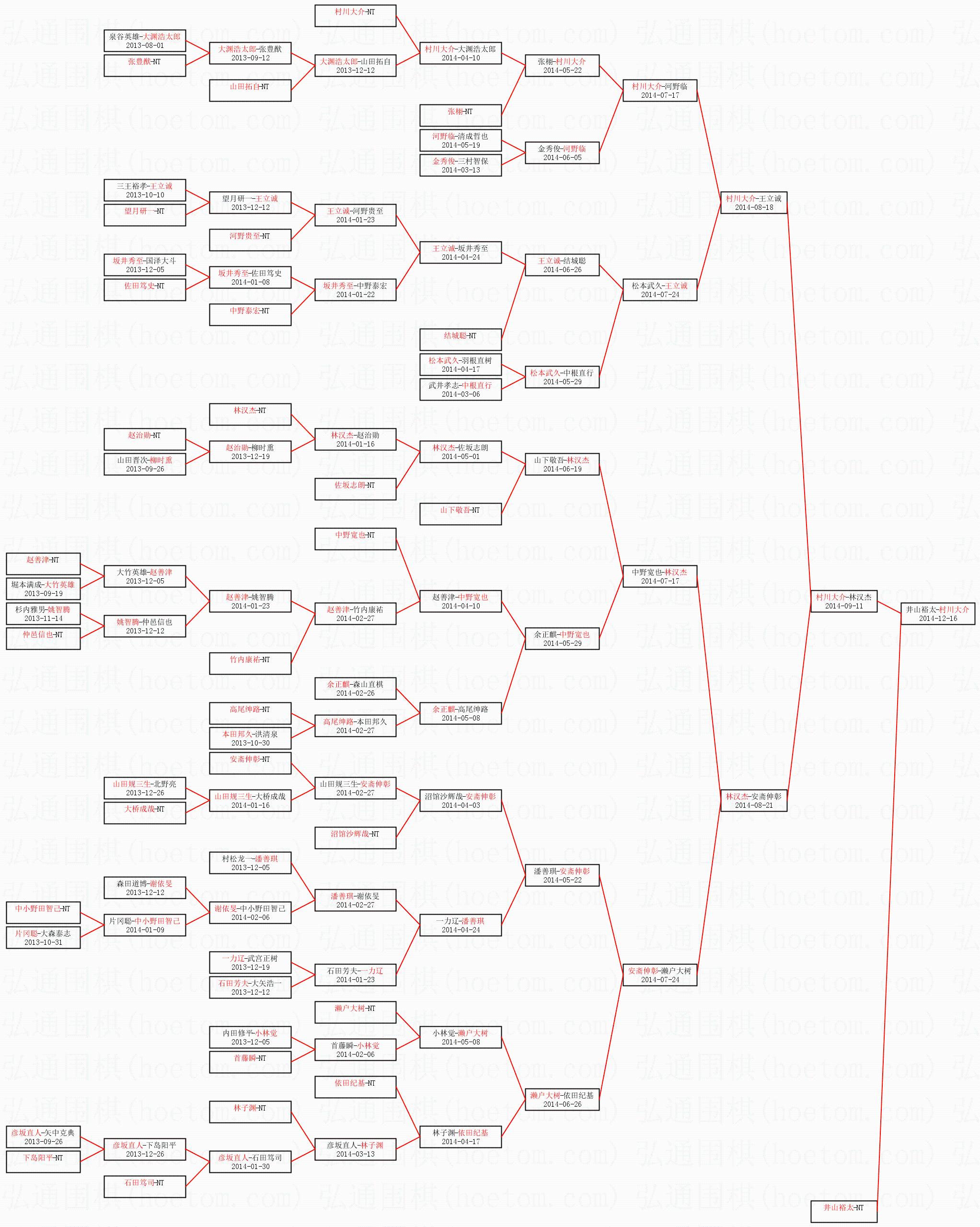 | 1.村川大介获得冠军,井山裕太获得亚军。决赛比分:村川大介3:2井山裕太。棋局: | ||