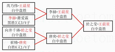 1.王晨星获得冠军,於之莹获得亚军。决赛比分:王晨星1:0於之莹。棋局: