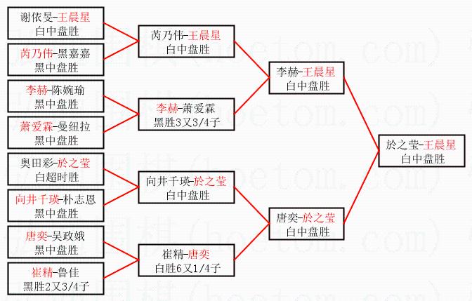 1.王晨星获得冠军,於之莹获得亚军。决赛比分:王晨星1:0於之莹。棋局: