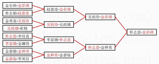 1.金彩瑛获得冠军,朴志恩获得亚军。决赛比分:金彩瑛2:1朴志恩。棋局: