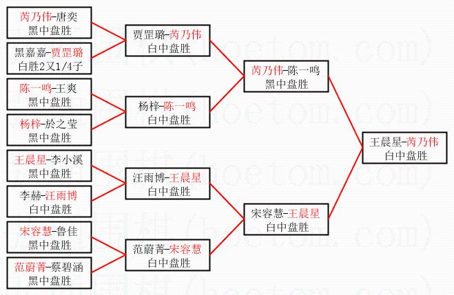 | 1.芮乃伟获得冠军,王晨星获得亚军。决赛比分:芮乃伟2:0王晨星。棋局: | ||