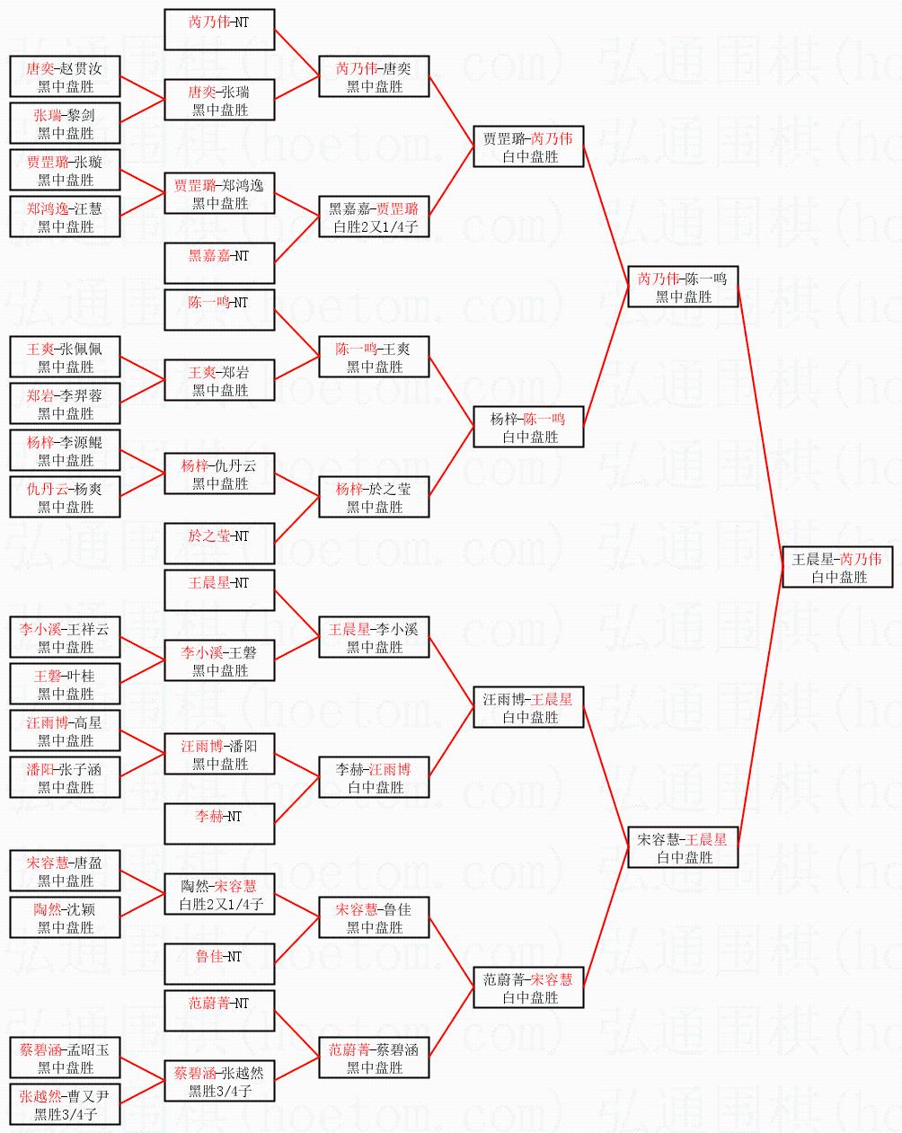 | 1.芮乃伟获得冠军,王晨星获得亚军。决赛比分:芮乃伟2:0王晨星。棋局: | ||