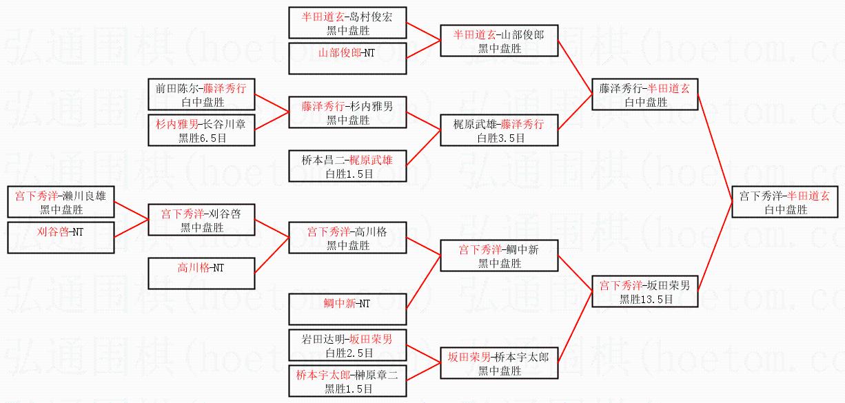 | 2.上半区半决赛半田道玄获胜, 比分:半田道玄 1:0 藤泽秀行。棋局: | ||