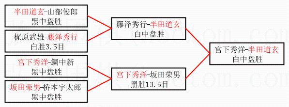 | 2.上半区半决赛半田道玄获胜, 比分:半田道玄 1:0 藤泽秀行。棋局: | ||