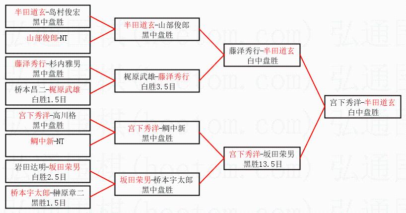 | 2.上半区半决赛半田道玄获胜, 比分:半田道玄 1:0 藤泽秀行。棋局: | ||