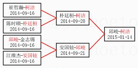 1.柯洁获得冠军,邱峻获得亚军。决赛比分:柯洁3:2邱峻。棋局: