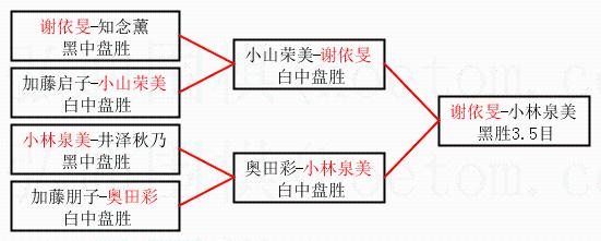 1.谢依旻获得冠军,小林泉美获得亚军。决赛比分:谢依旻1:0小林泉美。棋局: