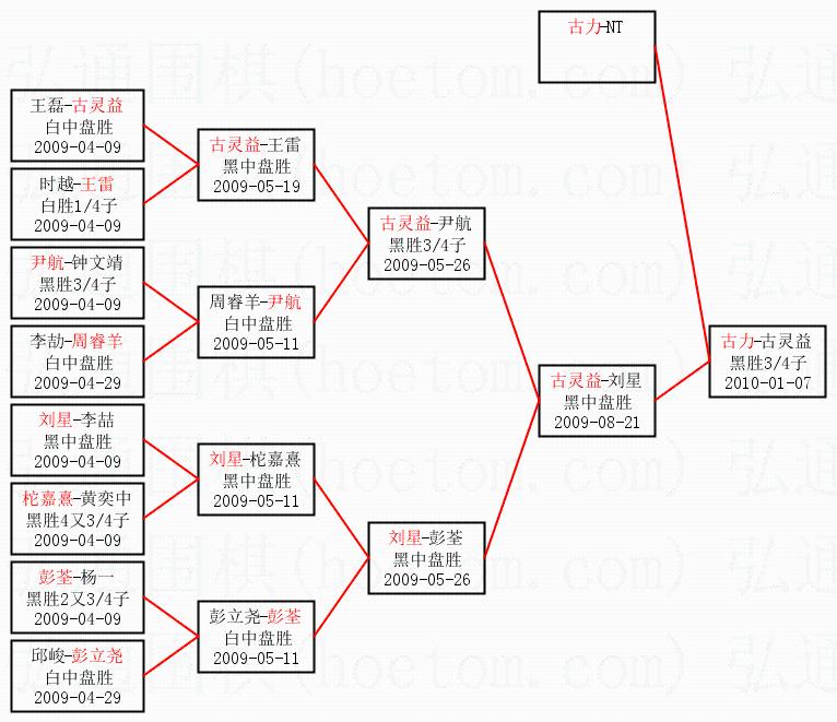 1.古力获得冠军,古灵益获得亚军。决赛比分:古力3:1古灵益。棋局:
