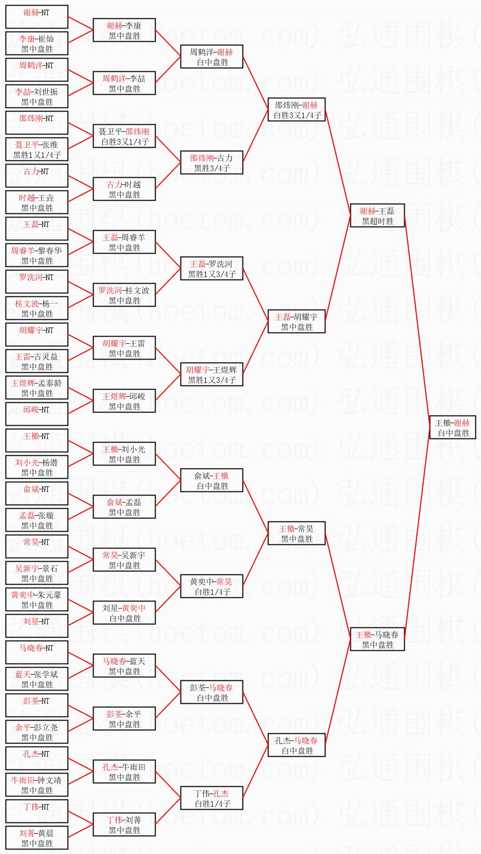 1.谢赫获得冠军,王檄获得亚军。决赛比分:谢赫1:0王檄。棋局: