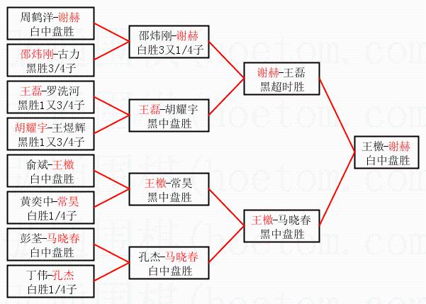 2.上半区半决赛谢赫获胜, 比分:谢赫 1:0 王磊。棋局: