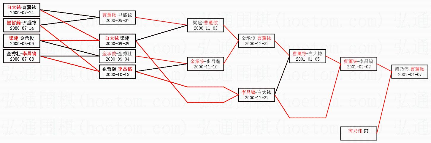 | 2.上半区半决赛曹薰铉获胜, 比分:曹薰铉 2:1 李昌镐。棋局: | ||