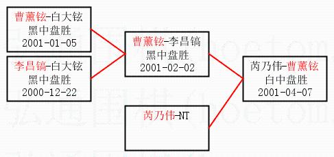 2.上半区半决赛曹薰铉获胜, 比分:曹薰铉 2:1 李昌镐。棋局: