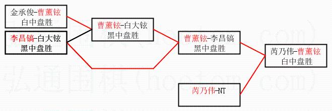2.上半区半决赛曹薰铉获胜, 比分:曹薰铉 2:1 李昌镐。棋局: