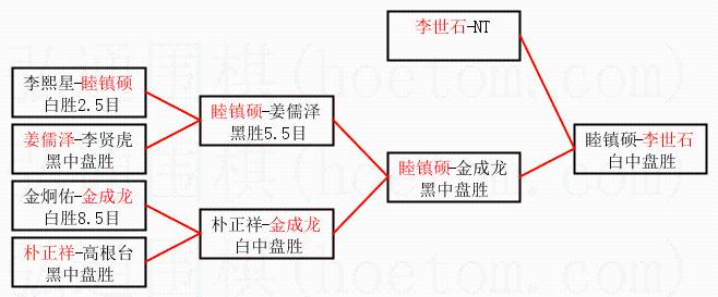 | 1.李世石获得冠军,睦镇硕获得亚军。决赛比分:李世石3:1睦镇硕。棋局: | ||