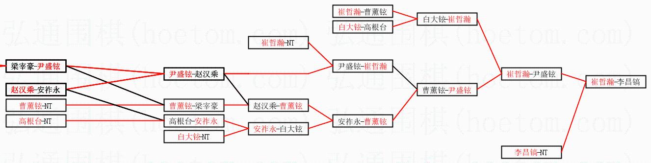 | 2.上半区半决赛崔哲瀚获胜, 比分:崔哲瀚 2:0 尹盛铉。棋局: | ||