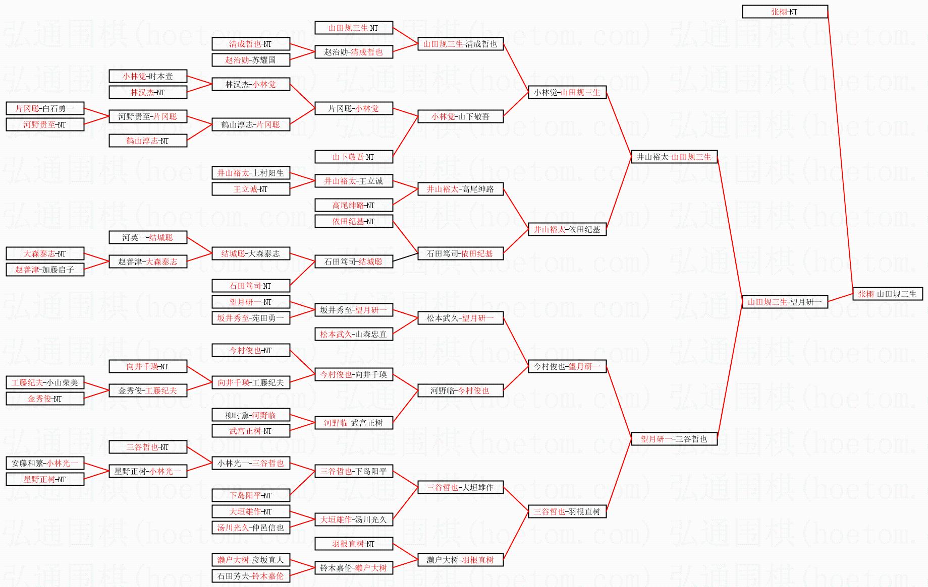 1.张栩获得冠军,山田规三生获得亚军。决赛比分:张栩3:0山田规三生。棋局: