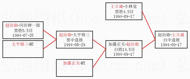 1.王立诚获得冠军,赵治勋获得亚军。决赛比分:王立诚1:0赵治勋。棋局: