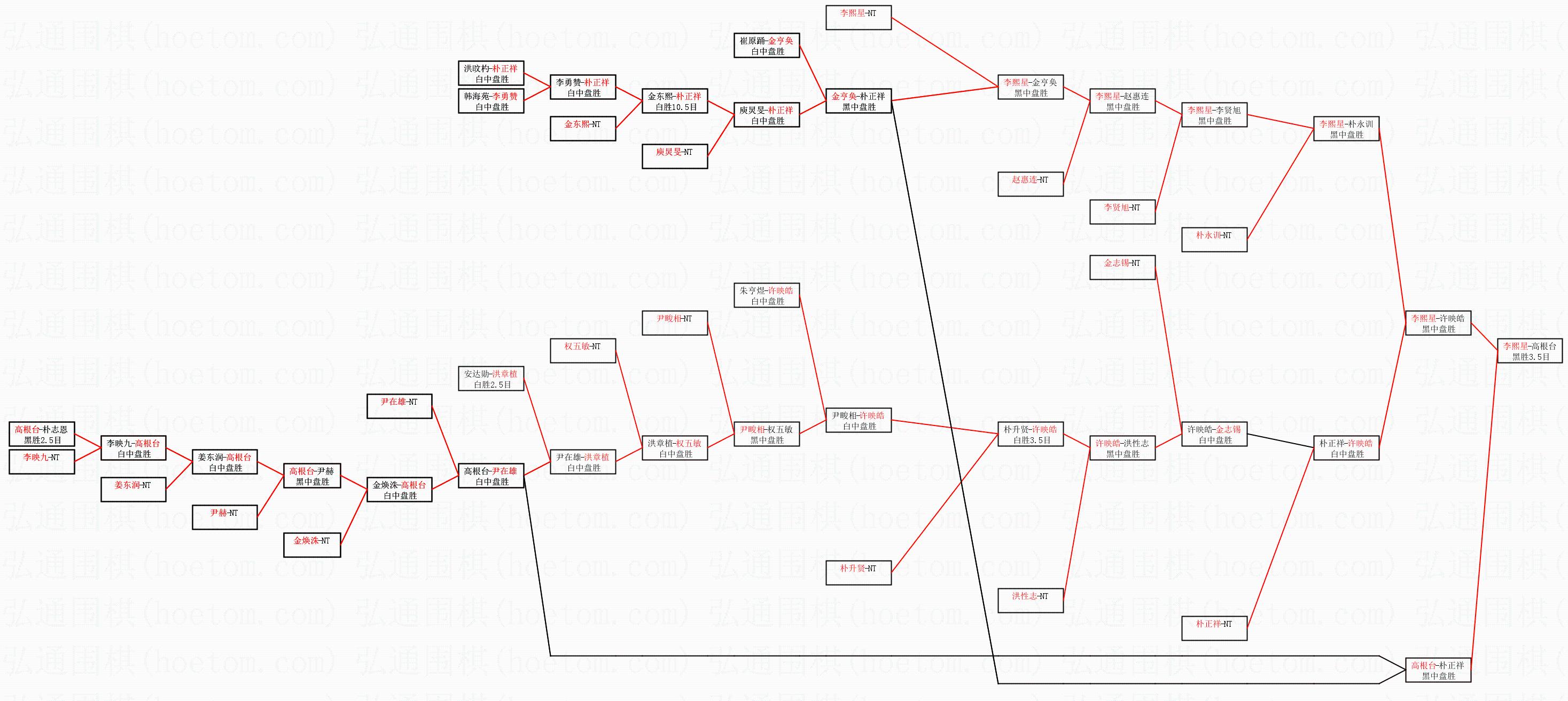 | 1.李熙星获得冠军,高根台获得亚军。决赛比分:李熙星2:0高根台。棋局: | ||