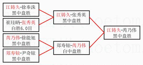 | 1.江铸久获得冠军,芮乃伟获得亚军。决赛比分:江铸久2:0芮乃伟。棋局: | ||