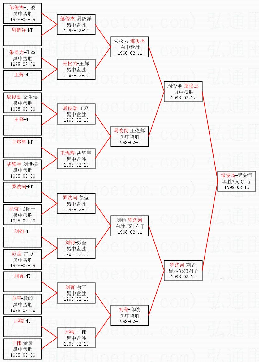 | 1998-02-14 罗洗河-邹俊杰 白胜1又1/4子 | ||