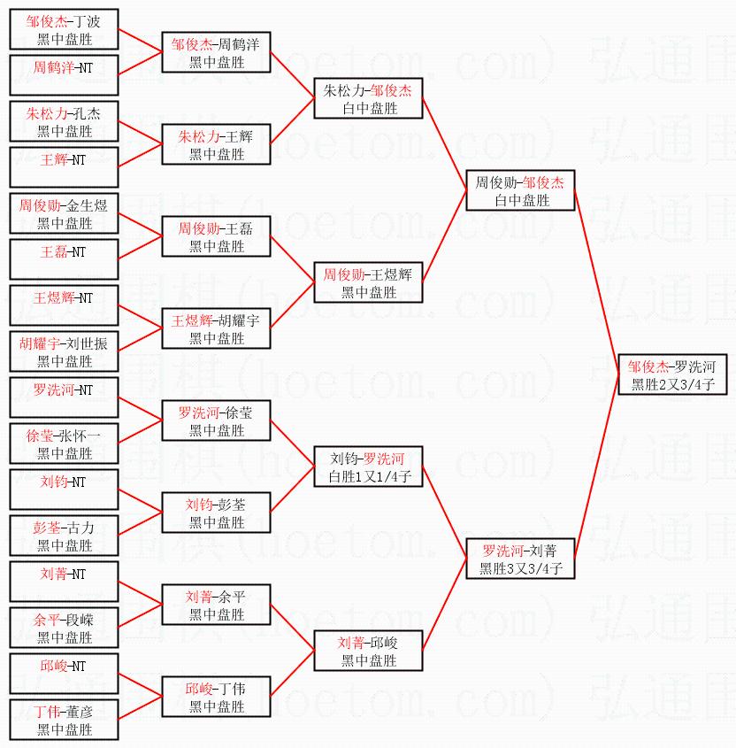 | 1.邹俊杰获得冠军,罗洗河获得亚军。决赛比分:邹俊杰2:0罗洗河。棋局: | ||