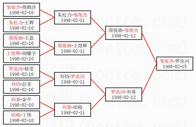 | 1998-02-14 罗洗河-邹俊杰 白胜1又1/4子 | ||