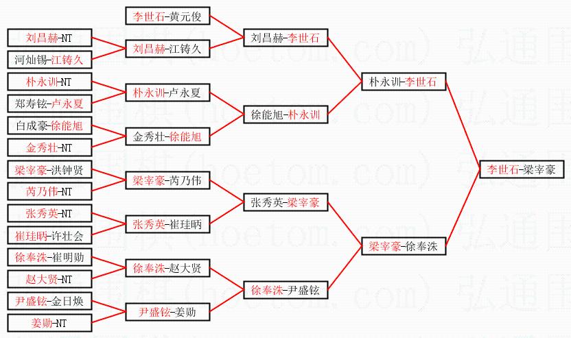 | 1.李世石获得冠军,梁宰豪获得亚军。决赛比分:李世石2:1梁宰豪。棋局: | ||