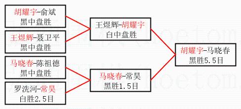 2.上半区半决赛胡耀宇获胜, 比分:胡耀宇 1:0 王煜辉。棋局: