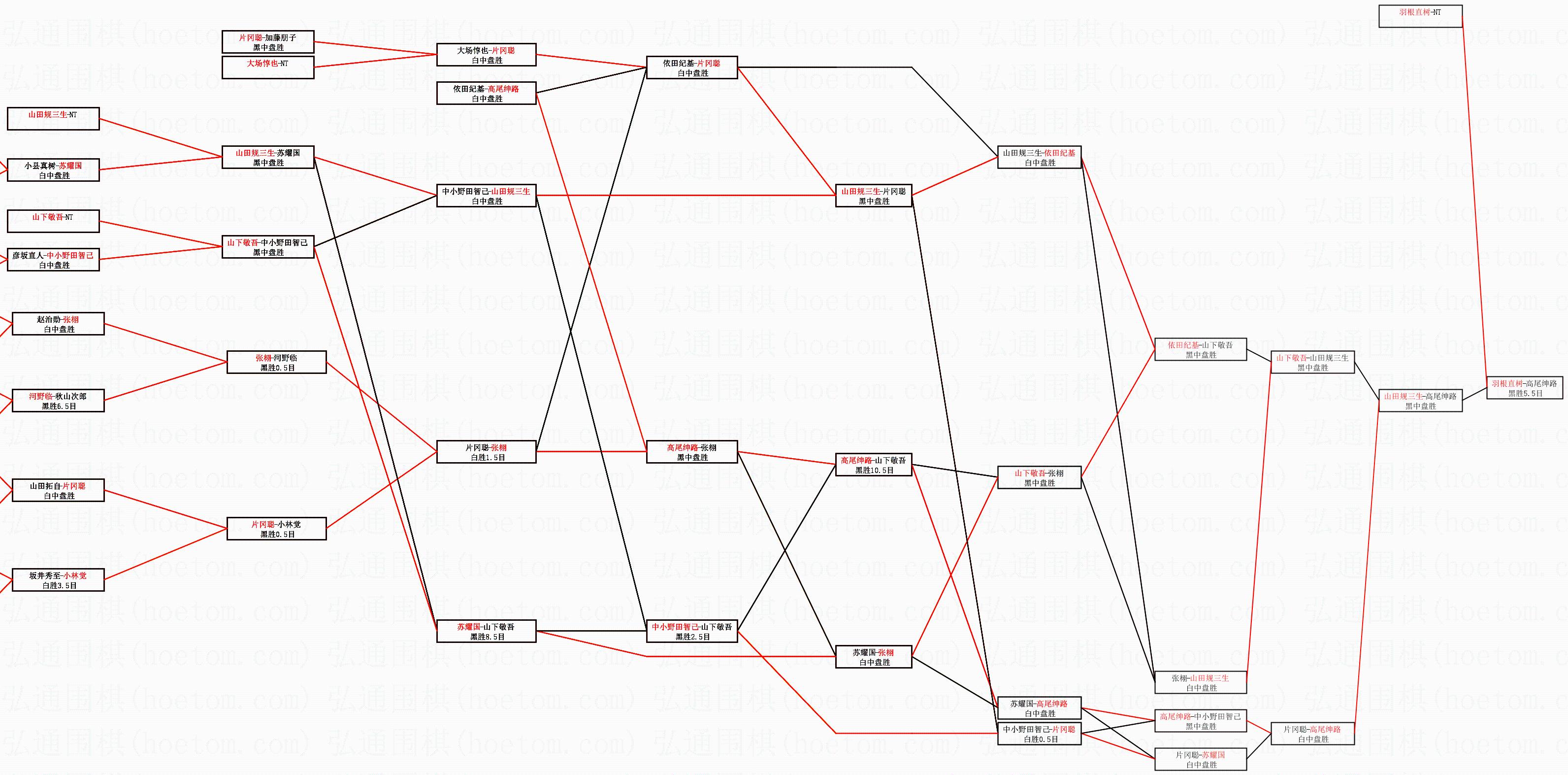 | 1.羽根直树获得冠军,高尾绅路获得亚军。决赛比分:羽根直树4:2高尾绅路。棋局: | ||