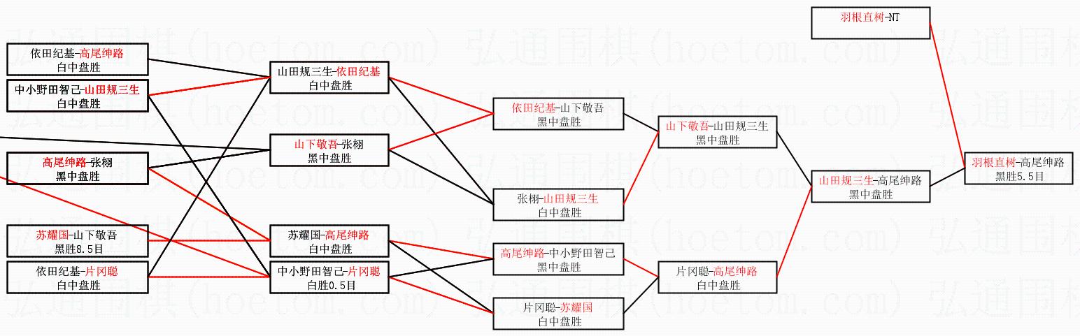 1.羽根直树获得冠军,高尾绅路获得亚军。决赛比分:羽根直树4:2高尾绅路。棋局: