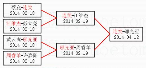 1.连笑获得冠军,邬光亚获得亚军。决赛比分:连笑1:0邬光亚。棋局: