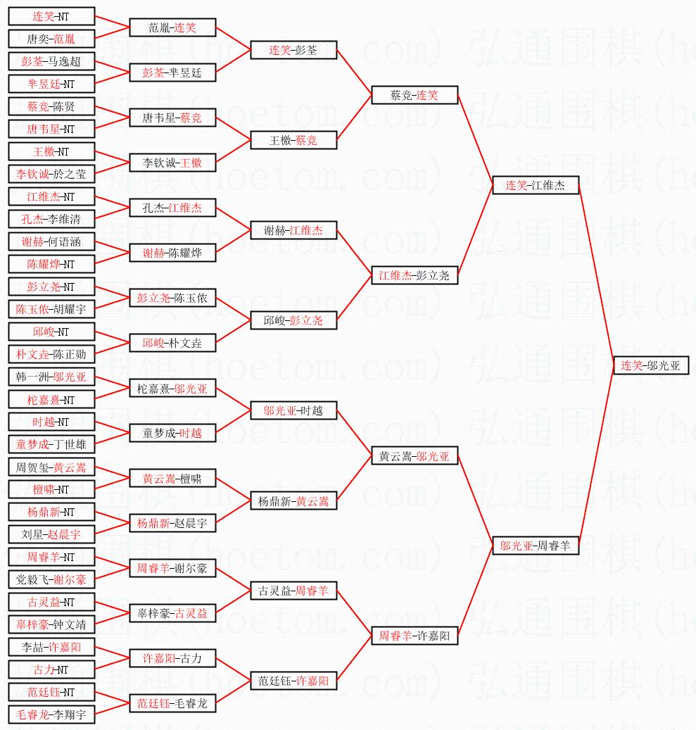 1.连笑获得冠军,邬光亚获得亚军。决赛比分:连笑1:0邬光亚。棋局:
