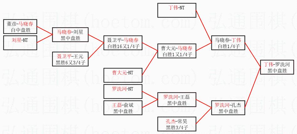 1.丁伟获得冠军,罗洗河获得亚军。决赛比分:丁伟1:0罗洗河。棋局:
