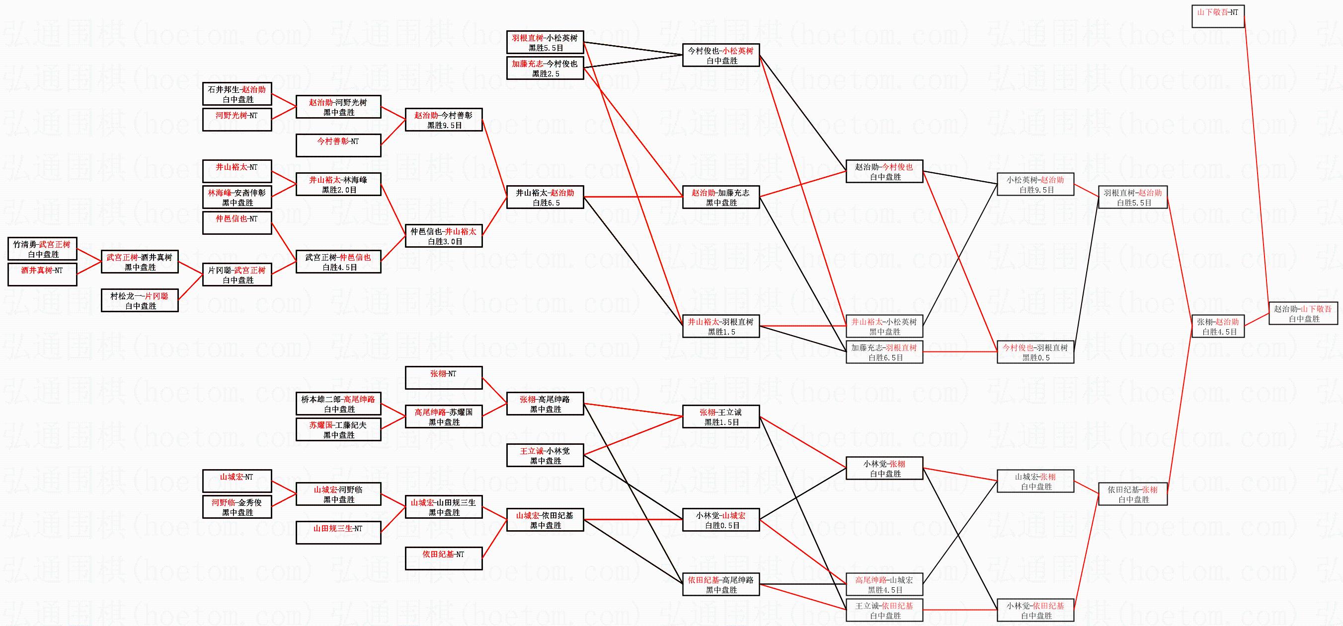| 1.山下敬吾获得冠军,赵治勋获得亚军。决赛比分:山下敬吾4:3赵治勋。棋局: | ||