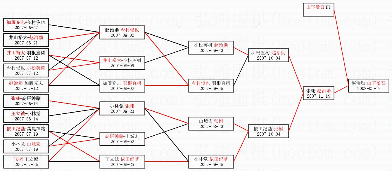 | 1.山下敬吾获得冠军,赵治勋获得亚军。决赛比分:山下敬吾4:3赵治勋。棋局: | ||